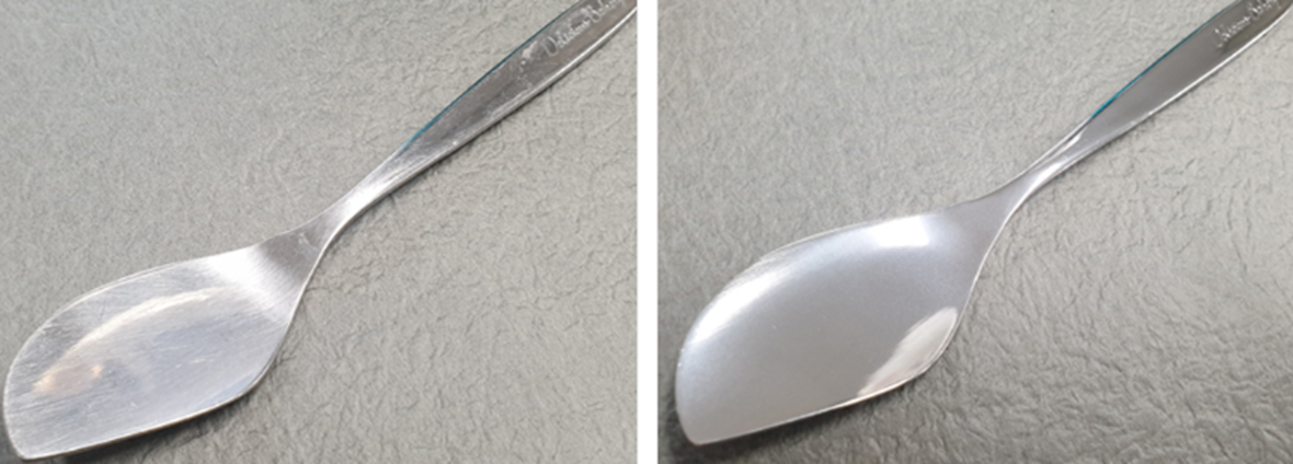 레스토랑에서 사용하는 스테인레스 커트러리는 생각보다 빨리 스크래치가 생깁니다.