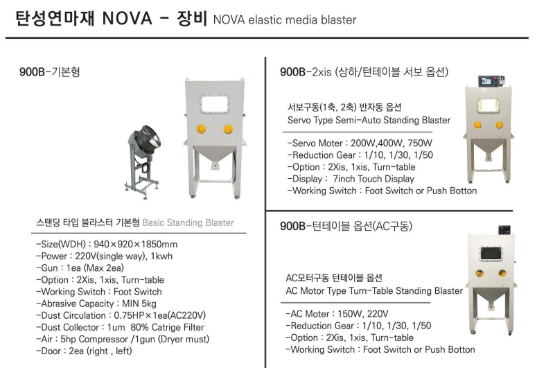 ✔ 순수 국내 기술로 개발되었으며, 다수의 업체에서 비슷한 성질을 가진 일본 연마재보다 탁월한 가공성을 인정받았습니다. 노바 연마재는 수가공으로 가증한 공정을 누구나 쉽게 할 수 있도록 만들어 졌으며,연마재의 내구성이 뛰어나 블라스터, 드래그 장비를 사용하여 자동화가 가능합니다.